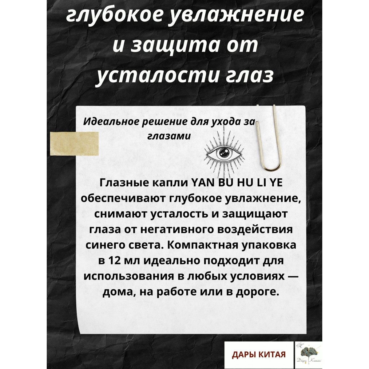 Глазные капли YAN BU HU LI YE — глубокое увлажнение и защита от усталости глаз